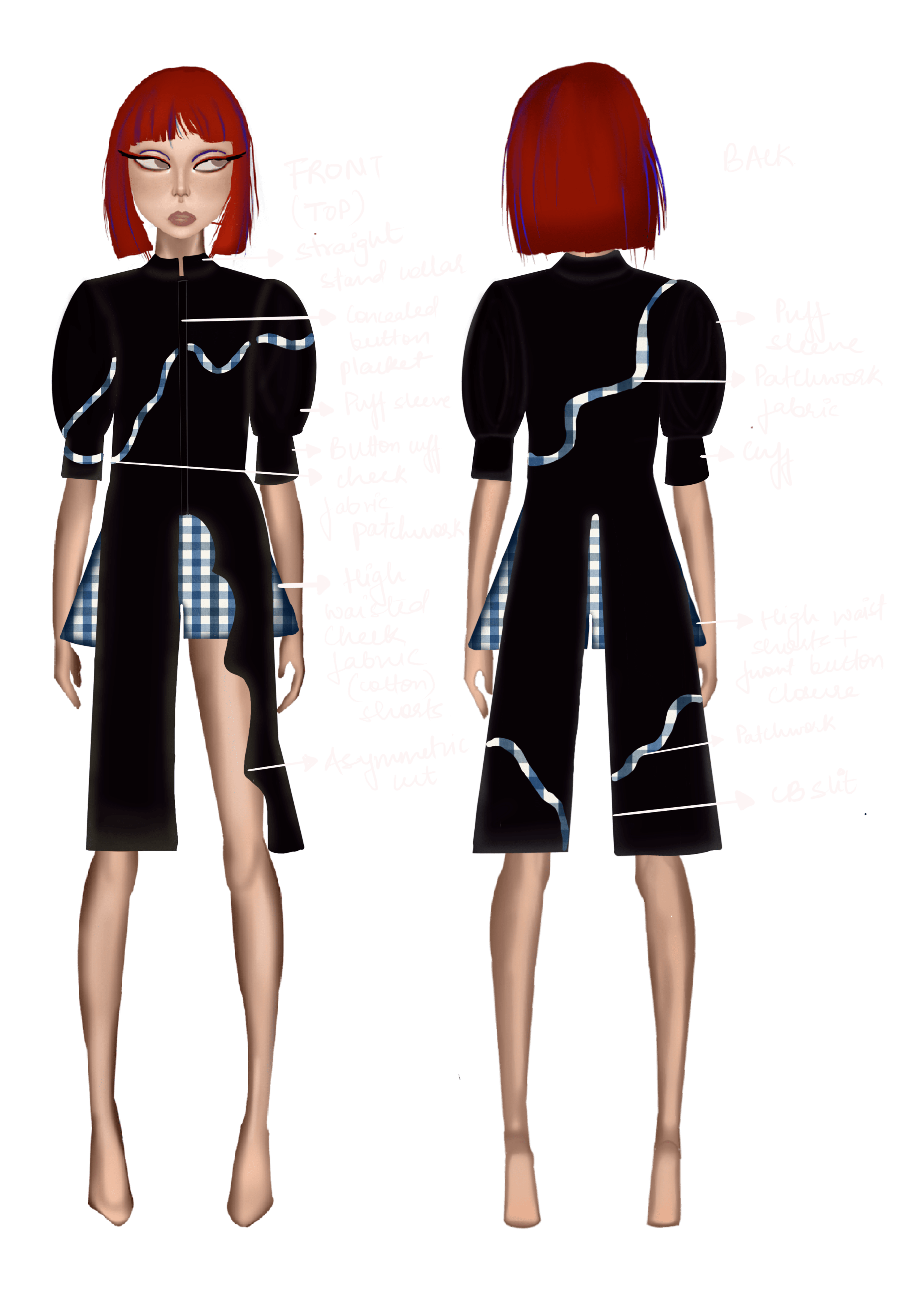 The print emulates the spontaneous charm of crayon drawings, to make the garment feels like a wearable canvas/paper capturing the essence of uninhibited childhood creativity and spontaneity.