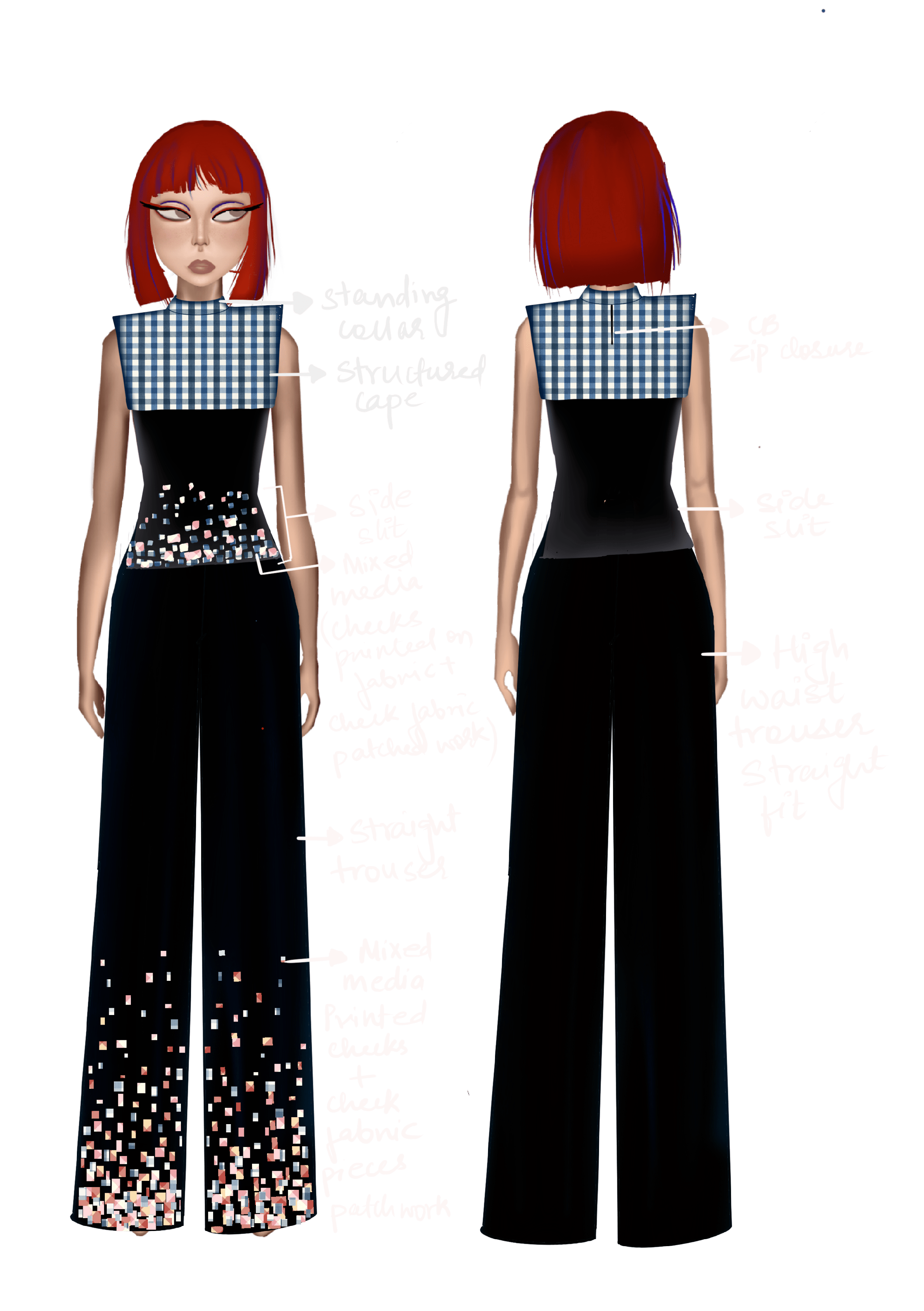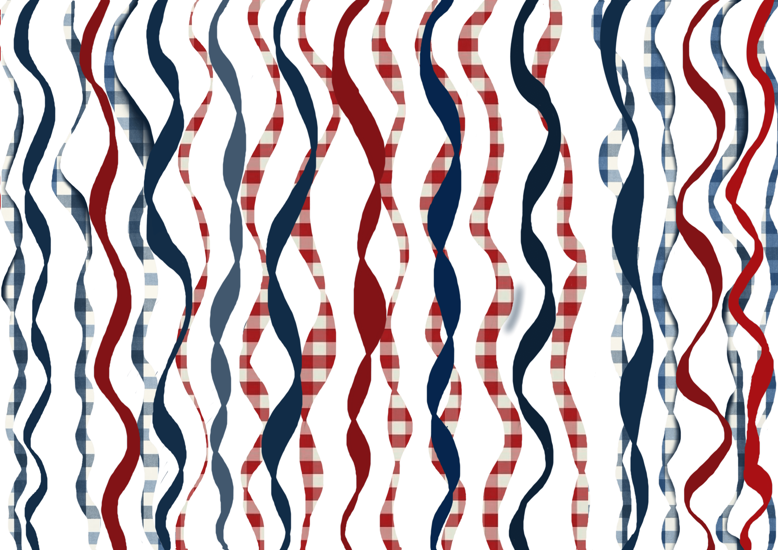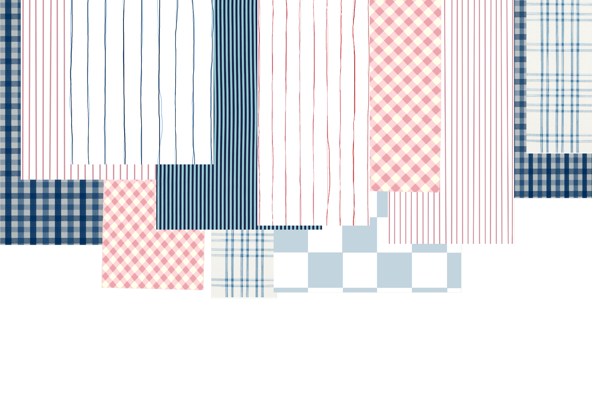 The checks and stripes stacked are distinct in their patterns yet cohesive as a whole which mirrors the essence of what childhood is.